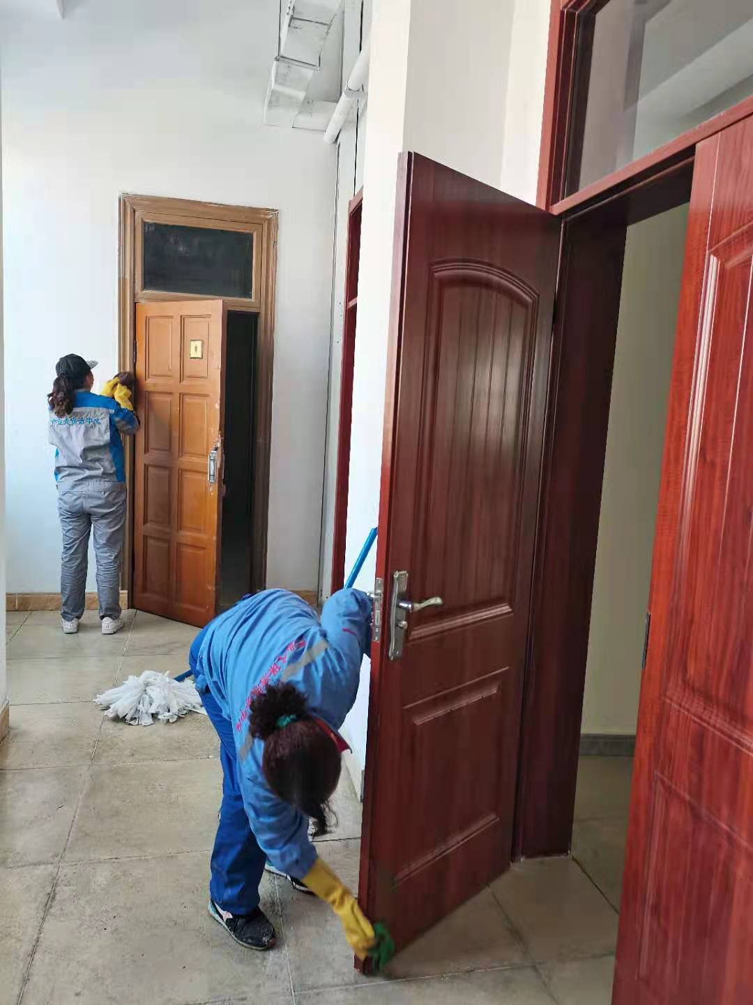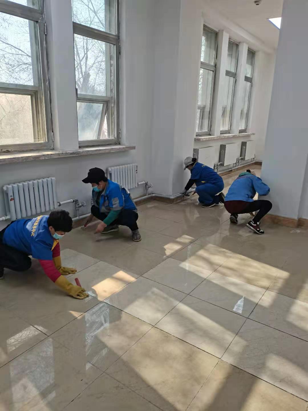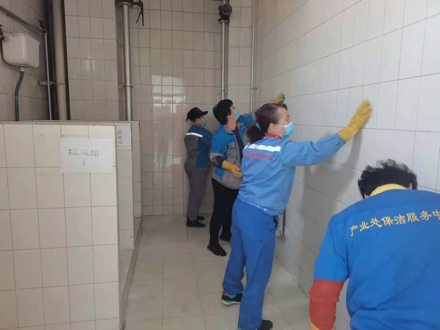 产业处副处长苏岩,保洁服务中心主任韩延灼对此次活动高度重视,事先进行了细致部署,划分了员工负责清扫的卫生区域。全体员工统一服装,拿着扫帚、抹布、手套等打扫工具,个个热情高涨、干劲十足。按部署计划分工、分时段、分片区、严格按照卫生要求,全方位地对图书馆办公室、阅览室、自习室等进行了“搬家式”大扫除,做到清洁、细致、到位、无死角。特别是加强了对重点区域的防疫消杀,包括对公共卫生间水龙头、门拉手等手接触区域的擦拭消毒;卫生间地面、洗手盆、等区域的喷洒消毒以及对楼宇内公共区域地面喷洒消毒,确保环境的干净、安全,为全体师生的健康提供保障。