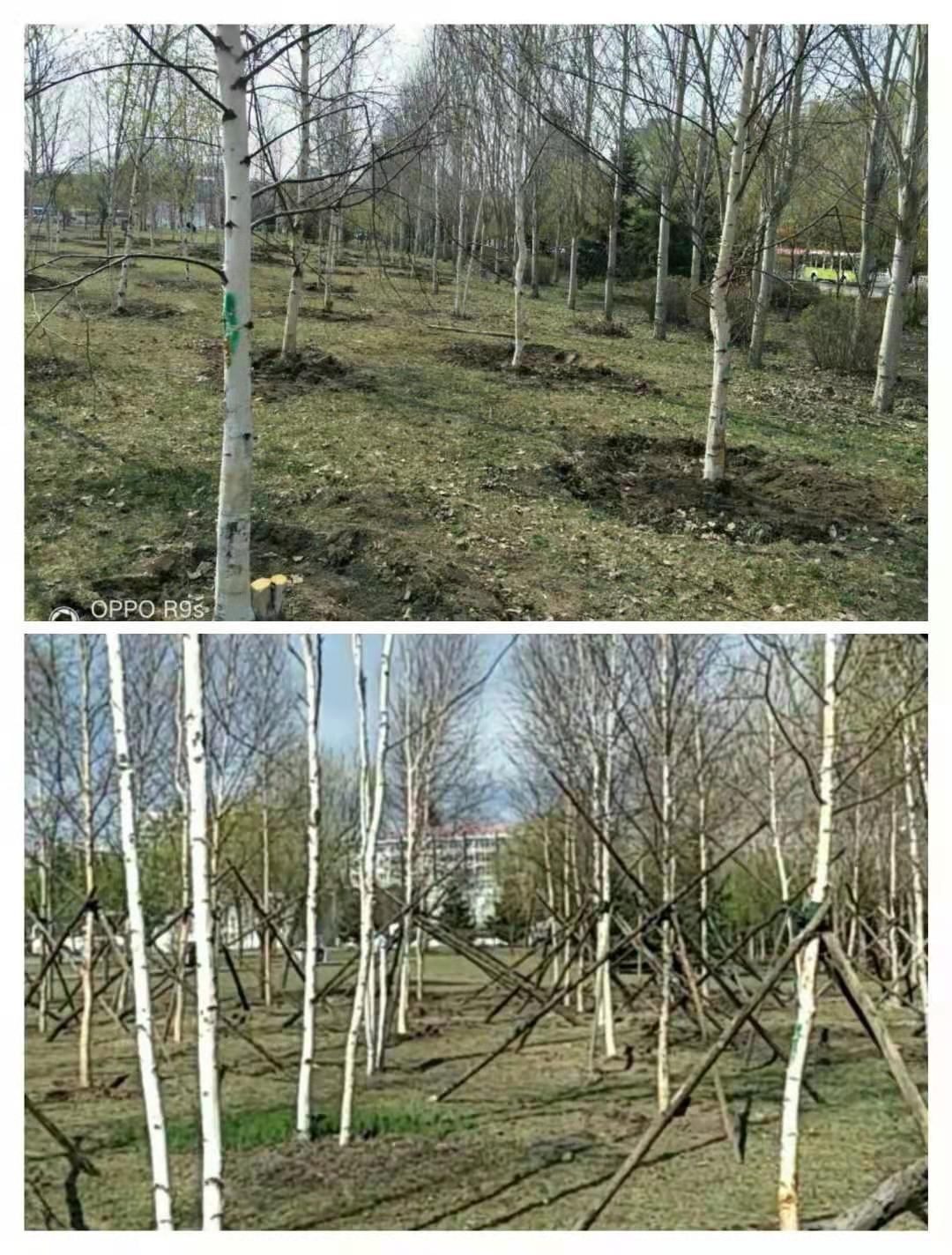 “党员干部义务植树”活动结束后,后勤管理处组织园林工人,在技术人员指导下对新栽植的白桦树进行了支护加固和深浇水,后期将陆续做好浇水、喷药、封土、修枝、除病虫害等系列养护工作。
