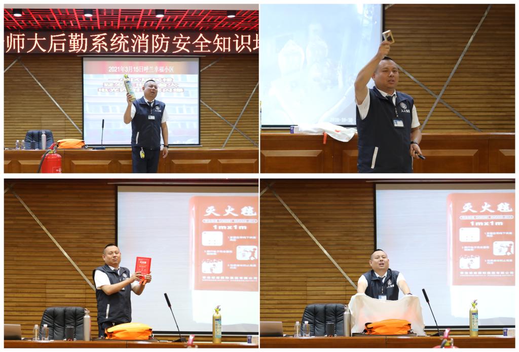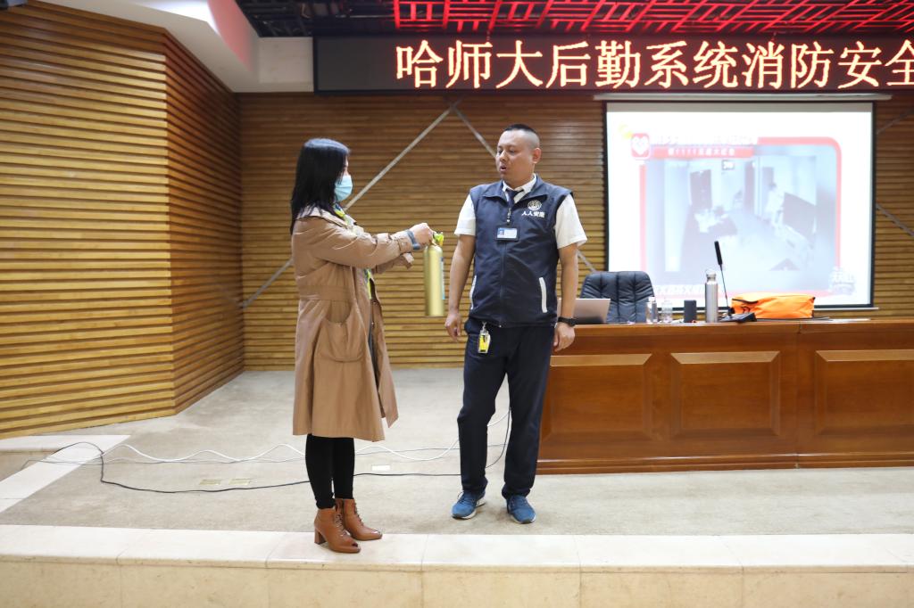 5月12日,是我国第13个全国防灾减灾日,主题是“防范化解灾害风险,筑牢安全发展基础”。为进一步巩固提高后勤系统全体干部职工的防灾减灾自救能力和消防安全意识,全面普及消防安全知识,贯彻“预防为主、防消结合”的消防工作方针,后勤管理处、产业处联合举办哈师大后勤系统全国防灾减灾日主题宣传活动暨消防安全知识培训讲座。活动由哈尔滨市卫民安消防宣教中心主任姜言君以“全民关注消防、生命安全至上”为题做主讲培训。后勤管理处、产业处两部门领导及干部职工一百余人参加活动。