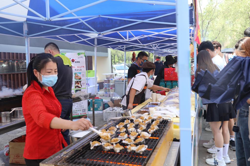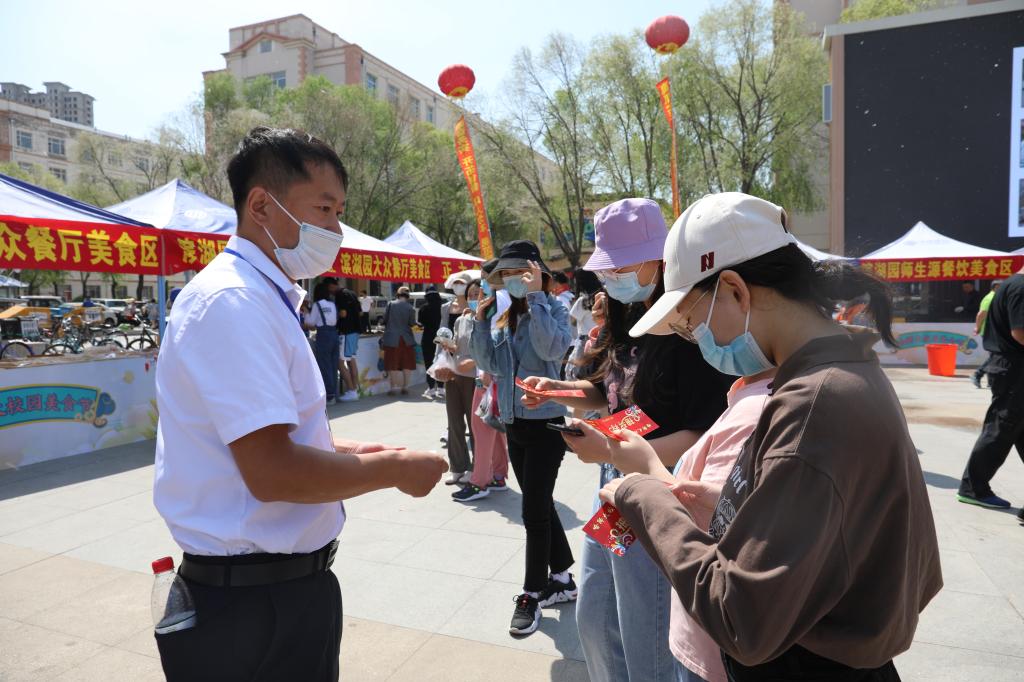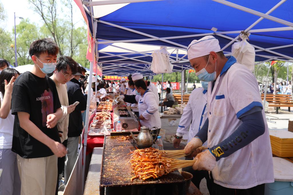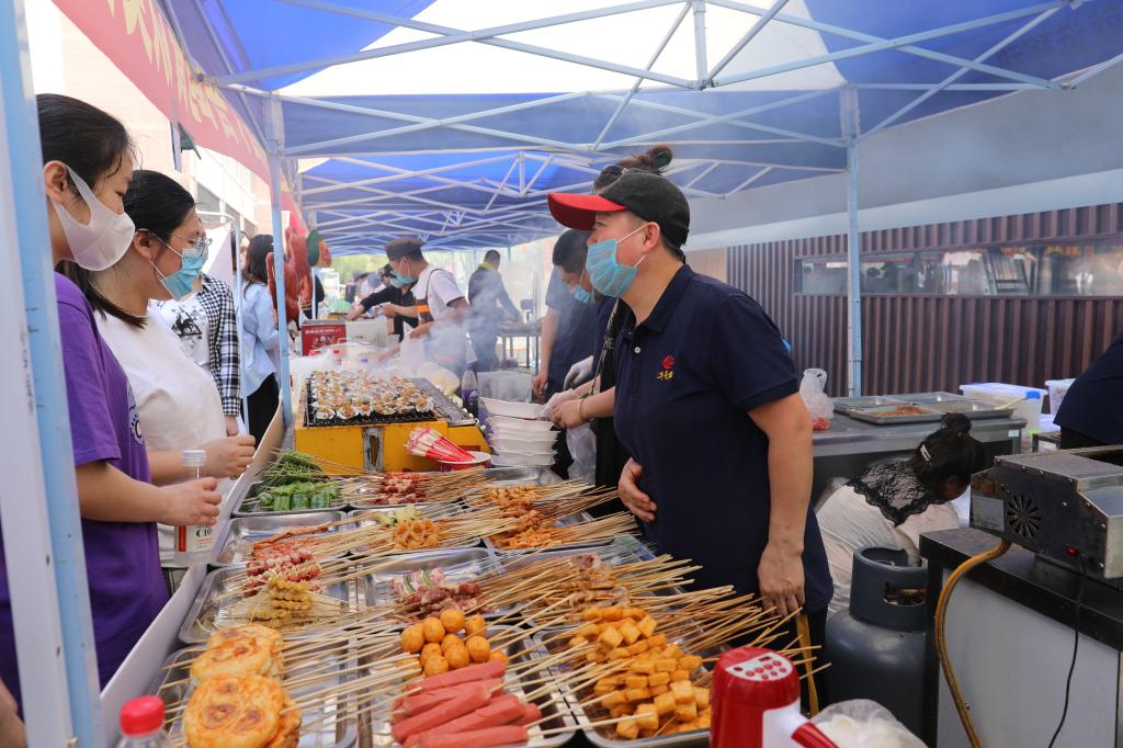 美食节活动现场热闹非凡、气氛热烈,琳琅满目的摊位,各位“美食家们”驻足流连,饶有兴趣地选择品尝各色风味小吃。无论是烤全羊、小龙虾、铁板鱿鱼、烧烤、卤肉、凉皮,还是鸡翅包饭、辣炒海鲜汇、鸭货、锅包肉、毛巾卷、海绵蛋糕等,都让师生们齿颊留香、回味无穷。活动期间,产业处饮食服务中心工作人员为同学们准备了有趣的互动小游戏和精彩纷呈的节目,活动现场纷纷向学生发放美食节代金券和抽奖券,使大家在品尝美食的过程中获得快乐和惊喜。