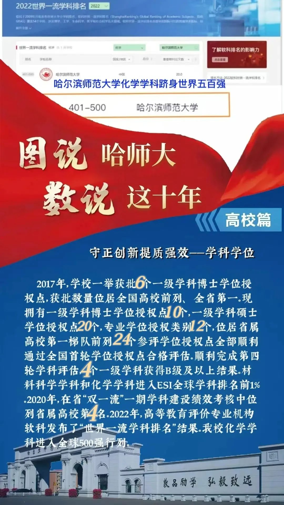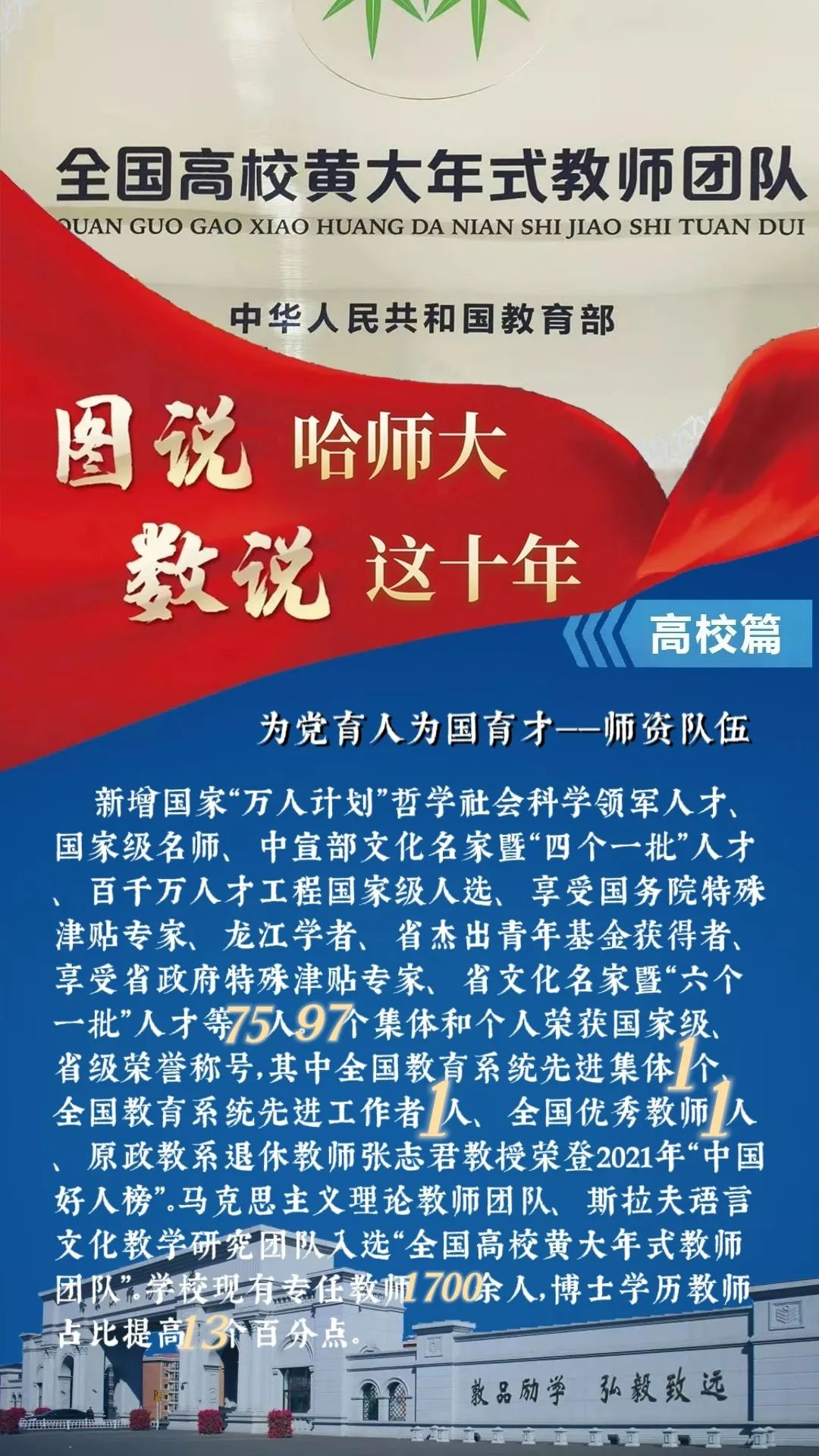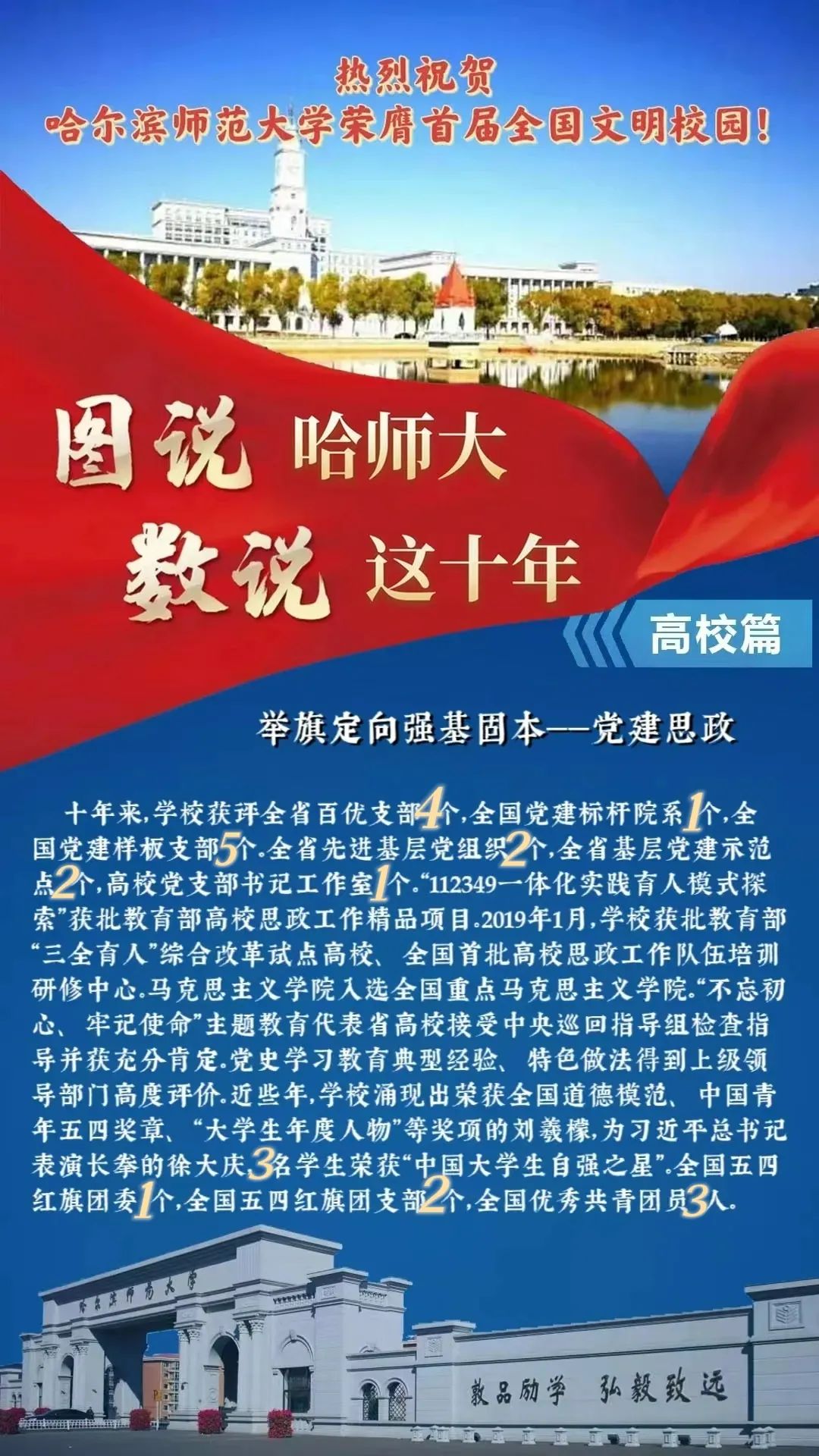 编者按:2012-2022年,党的十八大以来,哈尔滨师范大学的发展注定是不平凡的十年,学校坚持以习近平新时代中国特色社会主义思想为指导,全面贯彻落实党的教育方针,以立德树人为根本任务,紧紧抓住国家“双一流”建设和大力发展教师教育有利契机,明确建设“国内一流师范大学”发展目标,提出“三步走”发展战略和“七位一体”发展思路,内涵建设不断深化,人才培养质量稳步提升,办学特色优势更加彰显,重点领域综合改革成效显著,学校进入全面建设“国内一流师范大学”历史新阶段。