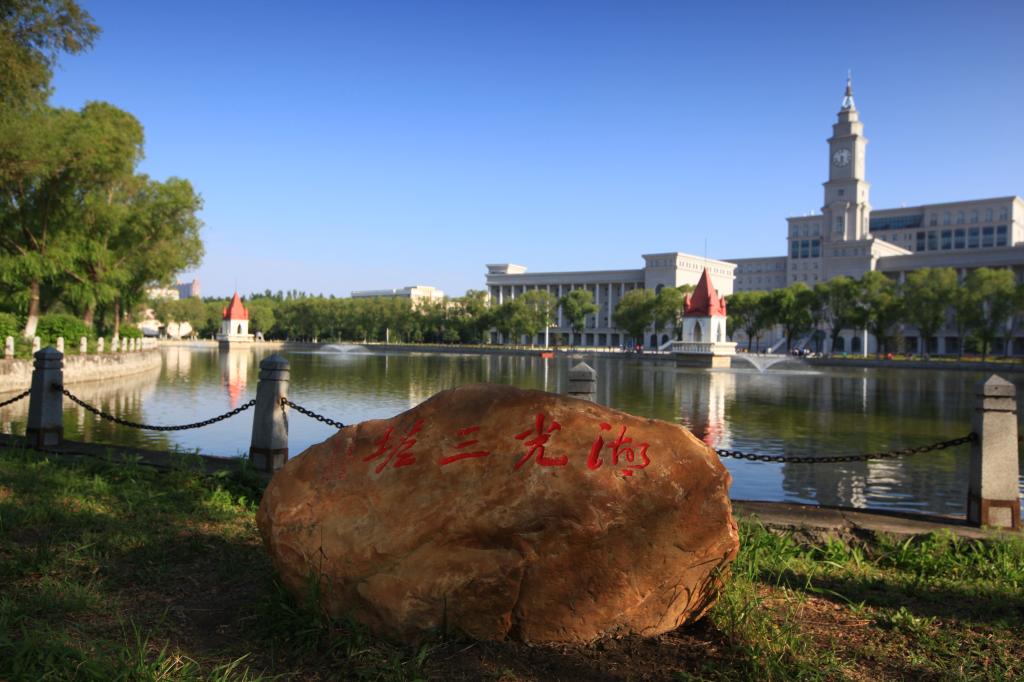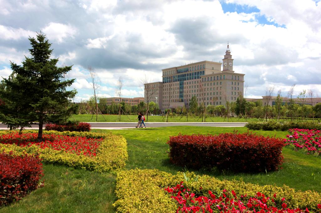 梦溪湖一桥飞架、碧波荡漾;天鹅湖水鸟蹁跹、蛙鸣悠扬;月莲花湖河塘月色、一帘幽梦;碧蓝天、青草地、五花果、七彩树;草地绿毯如茵、花海竞相绽放;楼宇、湖桥、亭阁、景观区灯带斑斓闪烁、风格各异的景观路灯照亮夜读学子归寝的路,呈现出一派优美、温馨、舒适、和谐的校园图景。景观、树木、花草、绿地及时修剪养护,做到花木有形;园林景观道路设施设置及时维护,做到指示标牌明晰;校园环境卫生及时清扫,做到干净清新整洁。组织学生参加卫生和清冰雪劳动,促进身心健康发展;组织学生参加义务植树活动,增强爱绿护绿意识;组织学生参加熏衣草养护管理,激发学习科研兴趣;组织毕业生认养一棵树,表达莘莘学子对母校的眷恋之情和感恩之心。