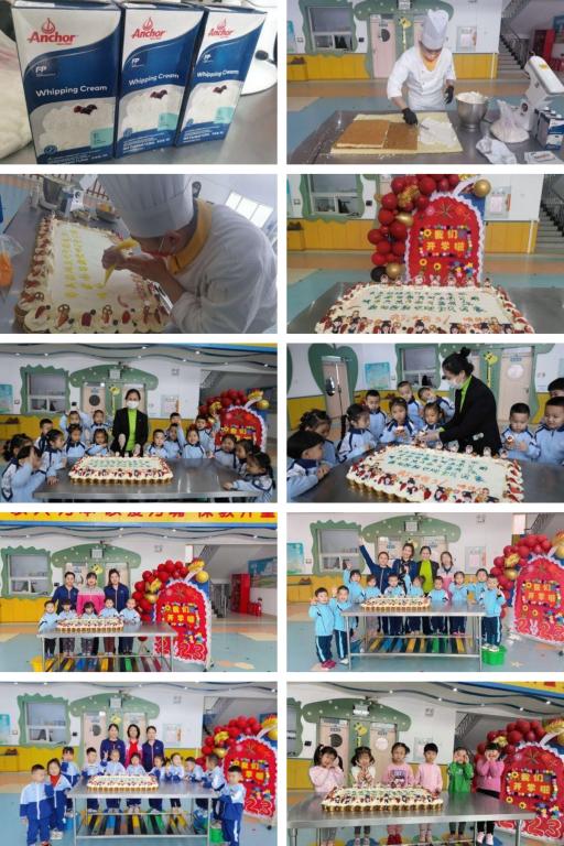 校产业处的各位领导也特别重视孩子们的开学仪式,特别请来师大稻香园蛋糕坊糕点师,为全园幼儿安排现场制作开学蛋糕。从原材料到制作,每个环节都严格把控,确保孩子们“食”的安全