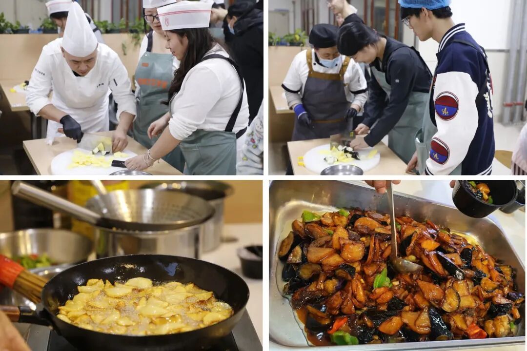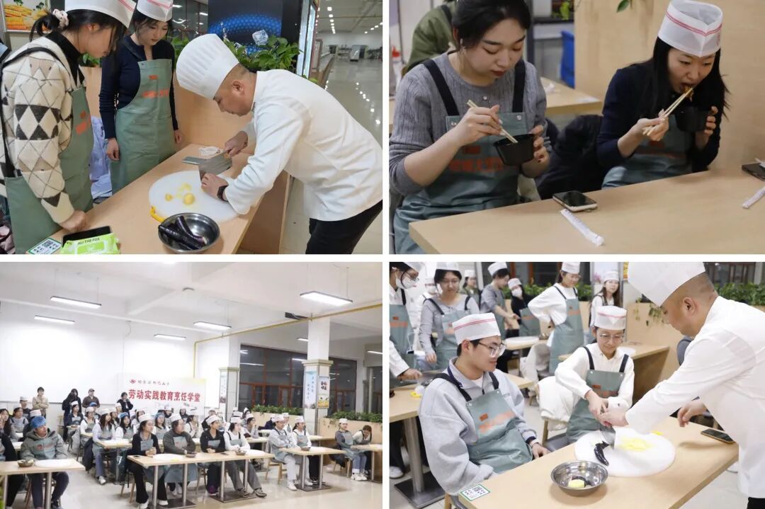 为深入贯彻落实《教育强国建设规划纲要(2024-2035年)》中“培养德智体美劳全面发展的社会主义建设者和接班人”的明确要求,哈尔滨师范大学产业处依托共青团第二课堂课程改革实践经验,充分发挥饮食服务中心育人功能,创新开办劳动教育烹饪学堂,推出第二期课程。将食堂变课堂、厨师变讲师,让同学们在锅碗瓢盆的碰撞中体悟劳动价值,在一蔬一饭的烹制中涵养生活情怀,真正实现以劳树德、以劳增智。